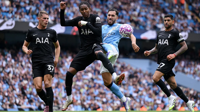 Không vào. Porro đánh đầu chuyền về ẩu cho thủ môn, tạo điều kiện để Marmoush đoạt được bóng. Marmoush sau đó sút chéo góc đi sạt cầu môn Tottenham trong gang tấc. Suýt chút nữa đã có bàn mở tỷ số cho Man City.