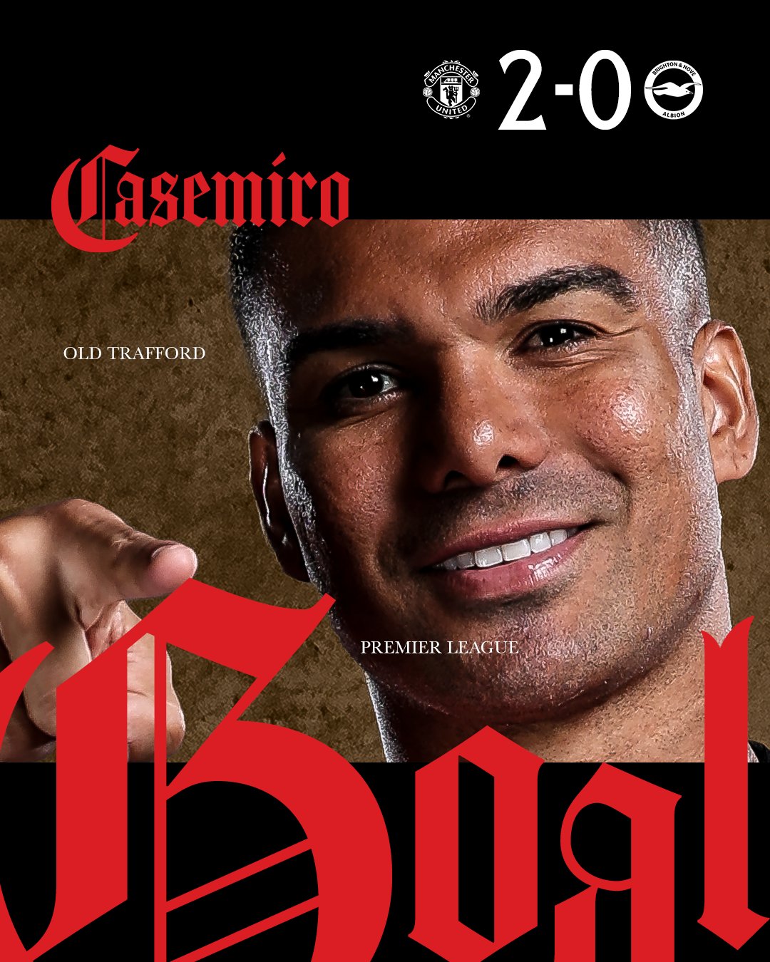 VÀOOO!!! Casemiro tự tin cầm bóng rồi dứt điểm ở trước vòng 16m50. Cú sút của Casemiro trúng vào người Ayari đổi hướng, làm bó tay thủ môn Verbruggen. 2-0 cho MU.