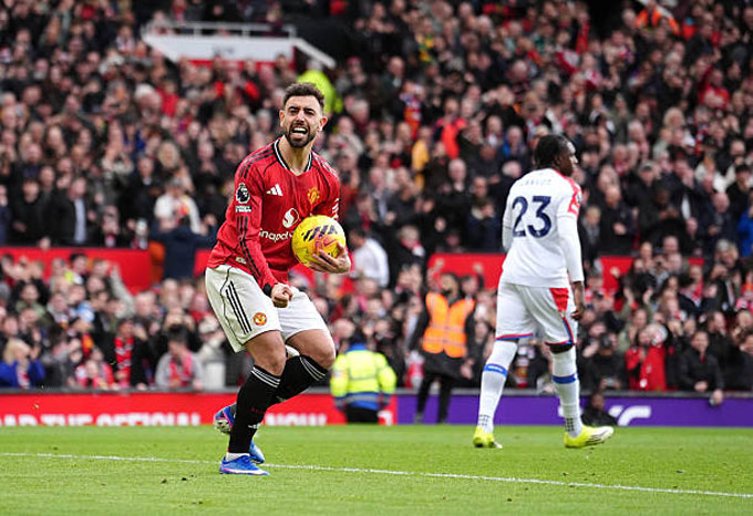 Bruno tạt bóng chuẩn xác để Sesko bật cao đánh đầu tung luới Palace đưa MU dẫn ngược 2-1.