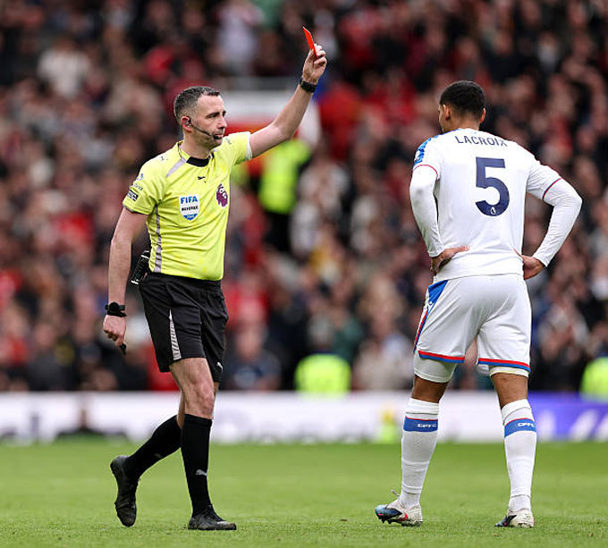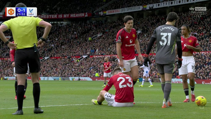 Sau khi tham khảo VAR, trọng tài quyết định phạt thẻ đỏ với Lacroix và trao cho MU quả phạt đền.
