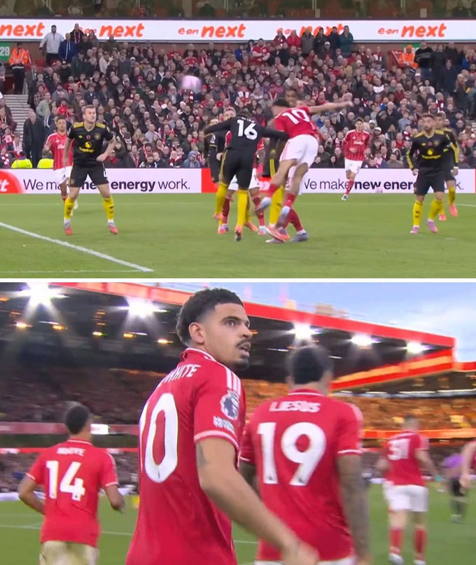 Từ đường chuyền vào của đồng đội, Morgan Gibb-White vượt qua sự theo kèm của Amad Diallo để đánh đầu xoáy vào góc xa. Dù thủ thành Lammens đã bay người hết cỡ nhưng vẫn không thể cứu thua.
