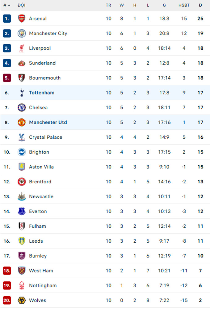 Hiện tại, MU đang xếp thứ 8 trên BXH với 17 điểm, còn Tottenham đứng thứ 6, có cùng điểm song nhiều hơn Quỷ đỏ về hiệu số bàn thắng bại (+9 vs +1).