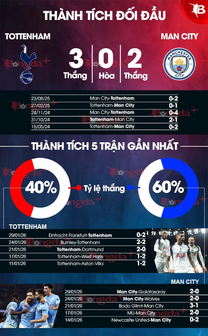 Phân tích phong độ Tottenham vs Man City