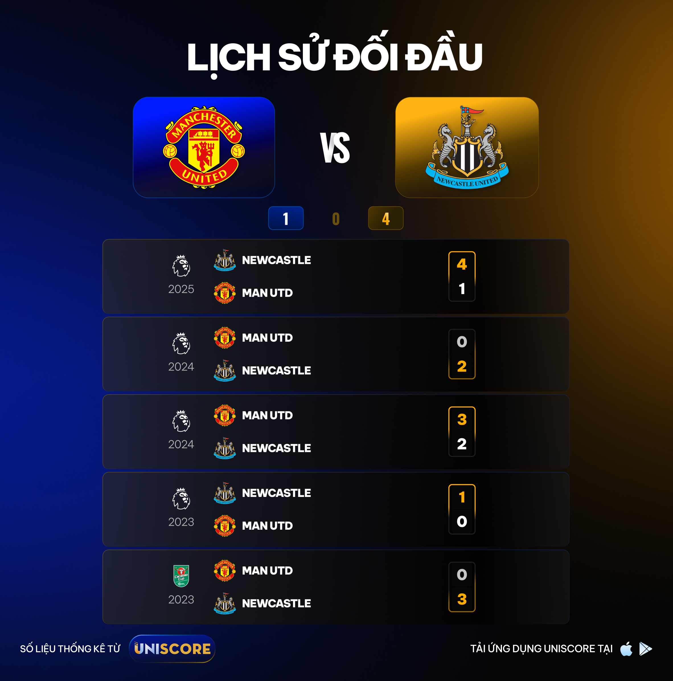 Newcastle, dù có thành tích sân khách không ấn tượng, lại sở hữu lịch sử đối đầu rất tích cực trước Man United trong hai mùa gần nhất. Việc từng thắng cả lượt đi lẫn lượt về mùa trước, bao gồm chiến thắng ngay tại Old Trafford, mang lại lợi thế tâm lý rõ ràng cho đoàn quân của Eddie Howe.