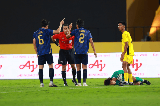 Thẻ đỏ cho Nabil Yusuf! U22 Malaysia chỉ còn thi đấu với 10 người.