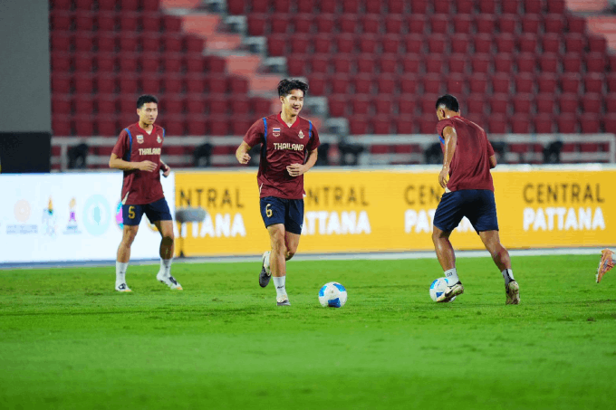 Các cầu thủ Thái Lan đã có mặt tại SVĐ Rajamangala. Trận đấu sẽ diễn ra sau đây 1 tiếng nữa.