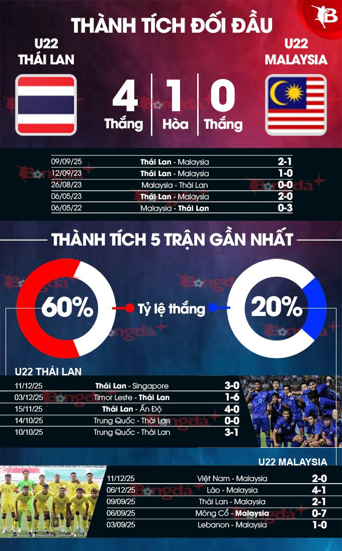 Bongdaplus trực tiếp trận U22 Thái Lan vs U22 Malaysia diễn ra vào lúc 19h00 ngày 15/12 ở vòng bán kết môn bóng đá nam SEA Games 33.