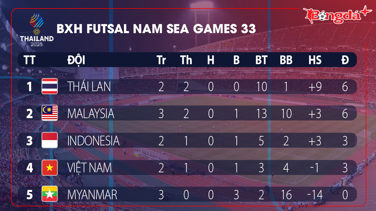 Sau lượt trận thứ ba, Thái Lan và Malaysia đang cùng có 6 điểm sau 2 trận thắng để chia nhau 2 vị trí dẫn đầu. ĐT futsal Việt Nam và Indonesia cùng có 3 điểm chia nhau 2 vị trí tiếp theo. Với ĐT futsal Việt Nam thì điểm số trước Thái Lan trong trận đấu tối nay rất quan trọng. Để nhóm lên hy vọng giành huy chương vàng, ĐT futsal Việt Nam buộc phải thắng đội chủ nhà. Còn không, Đức Hòa và đồng đội cần có ít nhất 1 điểm.
