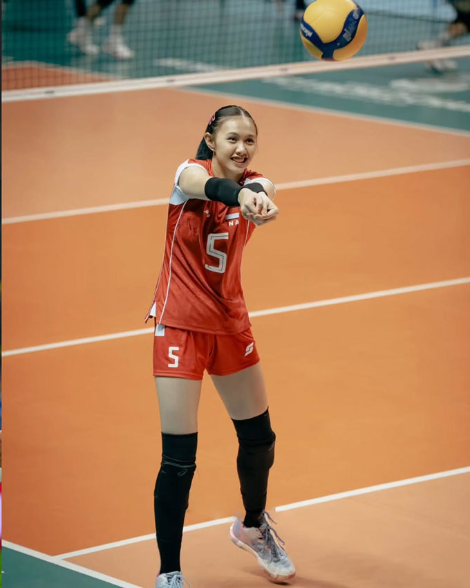 Nữ VĐV bóng chuyền Indonesia nhanh chóng gây chú ý không chỉ nhờ chuyên môn ổn định mà còn bởi vẻ ngoài rạng rỡ, phong thái tự tin và hình ảnh tràn đầy năng lượng trên sân đấu lẫn mạng xã hội.