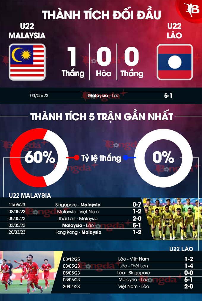 Hai đội có bàn thắng. 3/4 trận gần nhất của U22 Lào có bàn thắng. 4/5 trận gần nhất của U22 Malaysia cũng có bàn thắng.