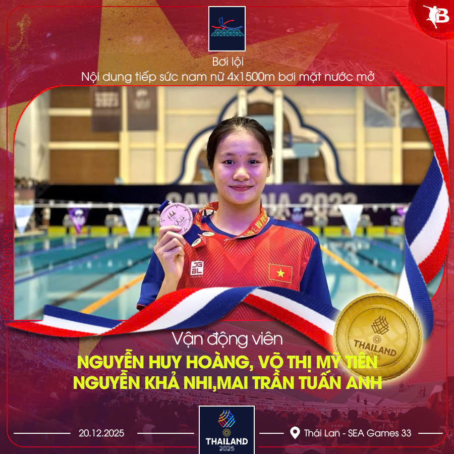 ĐT Bơi Việt Nam tỏa sáng ở đường đua biển với tấm HCV nội dung tiếp sức nam nữ 4x1500m bơi mặt nước mở với thành tích 1:12:18. Đội hình giành HCV gồm các vận động viên: Nguyễn Huy Hoàng – Võ Thị Mỹ Tiên – Nguyễn Khả Nhi – Mai Trần Tuấn Anh