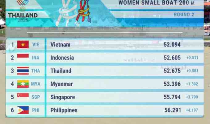 Đua thuyền rồng nữ Việt Nam đánh bại Indonesia và chủ nhà Thái Lan để về đích đầu tiên tại nội dung thuyền 10 nữ 200m, qua đó giành HCV thứ 2 trong ngày cho đoàn thể thao Việt Nam