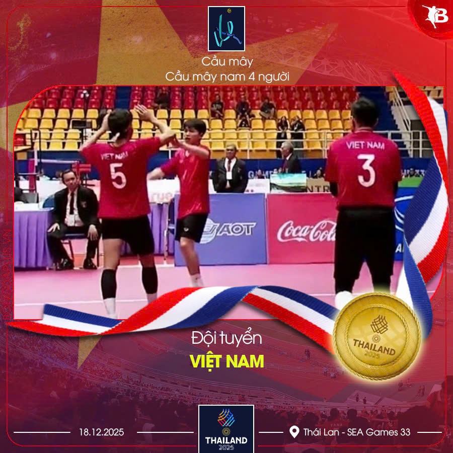 Cầu mây Việt Nam gồm Nguyễn Hoàng Lan, Nguyễn Văn Lý, Vương Minh Châu, Ngô Thanh Long đã viết nên khoảnh khắc lịch sử khi giành HCV nội dung đồng đội nam 4 người sau chiến thắng kịch tính 2-1 trước Myanmar. Tấm HCV này không chỉ là phần thưởng xứng đáng cho nỗ lực của toàn đội, mà còn đánh dấu sự trở lại đỉnh cao của cầu mây nam Việt Nam ở đấu trường khu vực sau 22 năm chờ đợi, kể từ lần đăng quang tại SEA Games 2003.