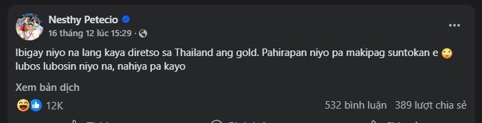Á quân Olympic Tokyo 2020- Nesthy Petecio đến từ Philippines đã thẳng thừng chỉ trích công tác trọng tài trên tài khoản cá nhân, cho rằng kết quả các trận đấu dường như đã được “định sẵn” để mang huy chương vàng về cho nước chủ nhà Thái Lan.
