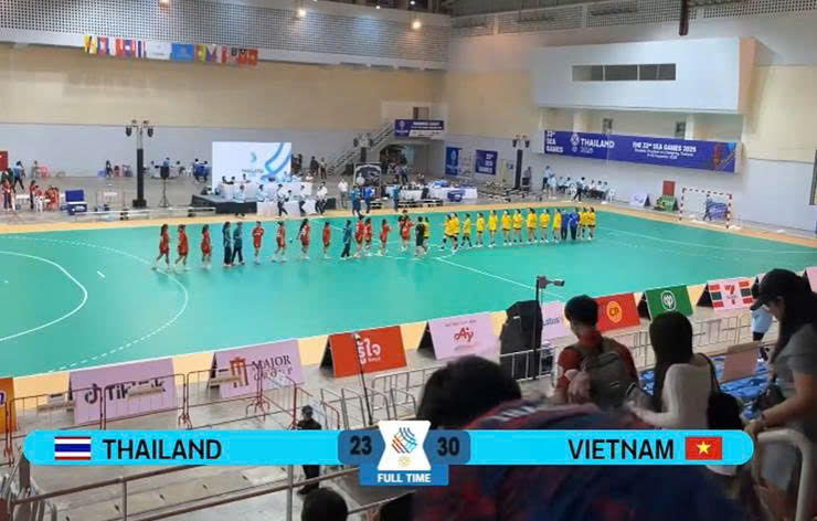 Đội tuyển nữ Việt Nam tưng bừng "làm lẩu thái" với tỷ số 29-22 trước đội chủ nhà Thái Lan. Dù có những phút phải thi đấu thiếu 2 người những các cô gái áo vàng không hề tỏ ra lép vế trước đội bạn.