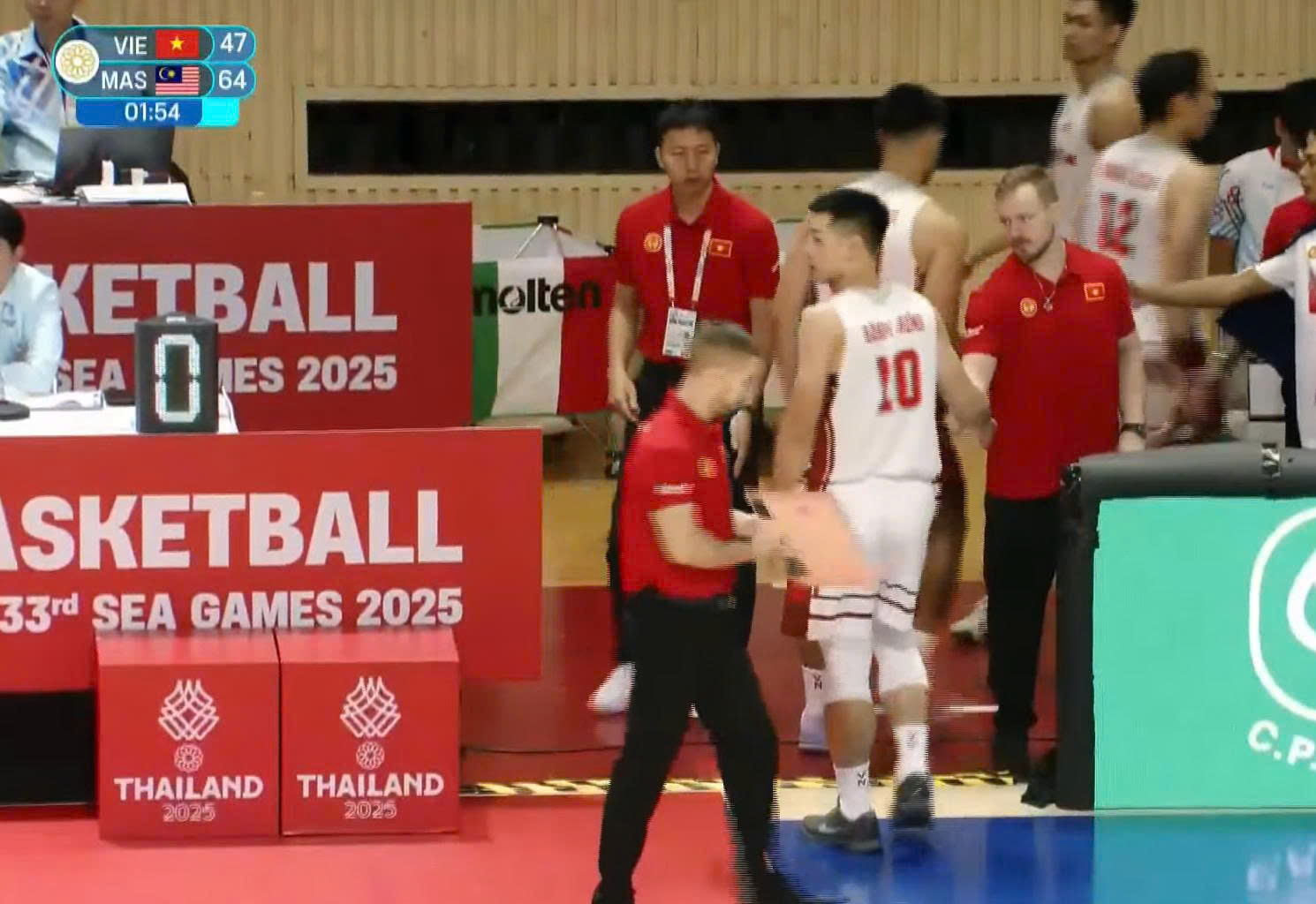 Trong hiệp đấu đầu tiên, đội tuyển Việt Nam nhập cuộc khá tốt và duy trì thế trận cân bằng, qua đó tạm thời dẫn trước Malaysia với tỷ số 21-19. Tuy nhiên, bước sang ba hiệp còn lại, các chàng trai lại thi đấu thiếu ổn định, liên tiếp mắc sai lầm và để đối thủ gia tăng cách biệt. Chung cuộc, đội tuyển Việt Nam nhận thất bại với tỷ số 63-89 trước Malaysia.