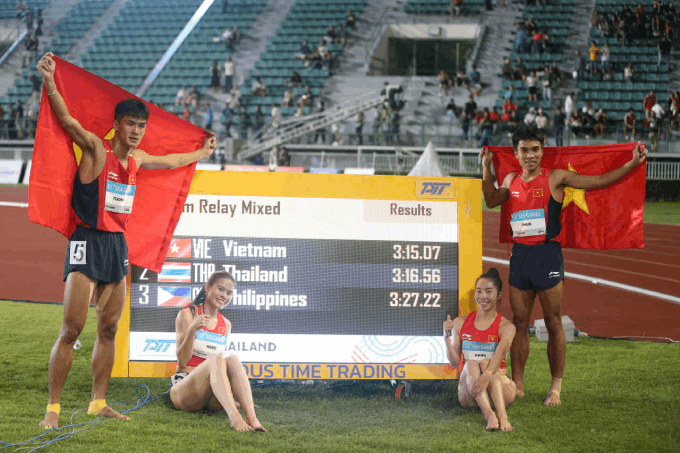 Nhóm VĐV Tạ Ngọc Tưởng, Nguyễn Thị Ngọc, Lê Ngọc Phúc và Nguyễn Thị Hằng xuất sắc giành tấm HCV nội dung 4x400m hỗn hợp với thành tích 3 phút 15 giây 07, phá kỷ lục SEA Games. Xếp sau là đại diện Thái Lan với thành tích 3 phút 16 giây 56 và Philippines với thành tích 3 phút 27 giây 22.