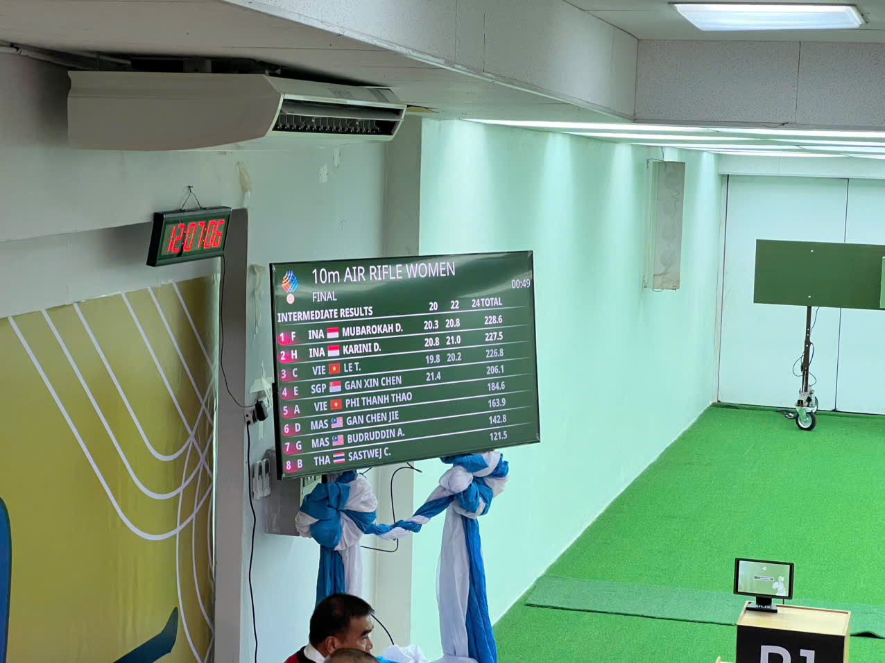 Không khí căng thẳng tại truồng bắn Tổng cục Thái Lan diễn ra vòng loại nội dung 10m súng trường nữ.