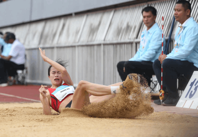 Điền kinh Việt Nam bước vào tranh tài các nội dung trong chiều nay 13/12. Mở đầu, hai VĐV Việt Nam Nguyễn Thị Hường và Vũ Thị Ngọc Hà tham dự chung kết nội dung nhảy ba bước nữ. Ảnh: Đức Cường
