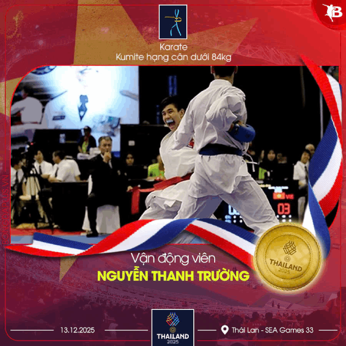 VĐV Nguyễn Thanh Trường tiếp tục mang HCV về cho đoàn thể thao Việt Nam ở hạng cân dưới 84kg nội dung Karate Kumite.