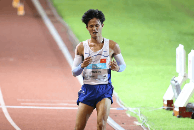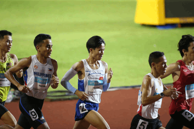 Nguyễn Trung Cường về đích ở vị trí thứ 4 chung kết nội dung 5000m Nam, còn đại diện chủ nhà Thái Lan giành HCV. Ảnh: Đức Cường