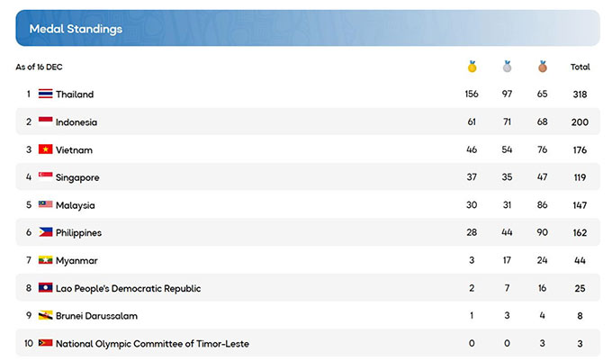 Danh sách VĐV Việt Nam giành HCV ngày 17/12 1. Hồ Thị Duy (Rowing) 2. Nguyễn Thùy Dung, Nguyễn Thùy Trang, Trịnh Thu Vinh (Bắn súng) 3. Hoàng Văn Đạt và Nguyễn Phú (Rowing) 4. Nguyễn Tấn Sang (Pencak Silat) 5. Phạm Thị Huệ, Đinh Thị Hải, Nguyễn Thị Giang, Bùi Thị Thu Hiền (Rowing) |