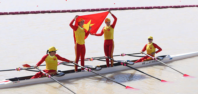 Tấm huy chương vàng thứ 4 của Rowing đến từ nội dung thuyền 4 hạng năng, với Phạm Thị Huệ, Đinh Thị Hải, Nguyễn Thị Giang, Bùi Thị Thu Hiền.