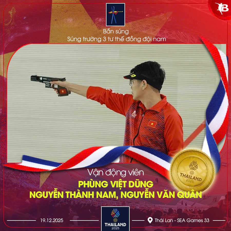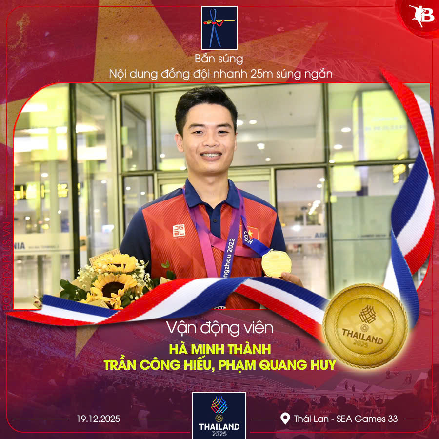 Bộ ba xạ thủ Hà Minh Thành, Trần Công Hiếu và Phạm Quang Huy đã xuất sắc giành HCV nội dung 25m súng ngắn bắn nhanh đồng đội nam với tổng điểm 1.700. Thành tích này không chỉ khẳng định vị thế của bắn súng Việt Nam mà còn mang về tấm HCV thứ 75 cho Đoàn thể thao Việt Nam tại SEA Games 33.