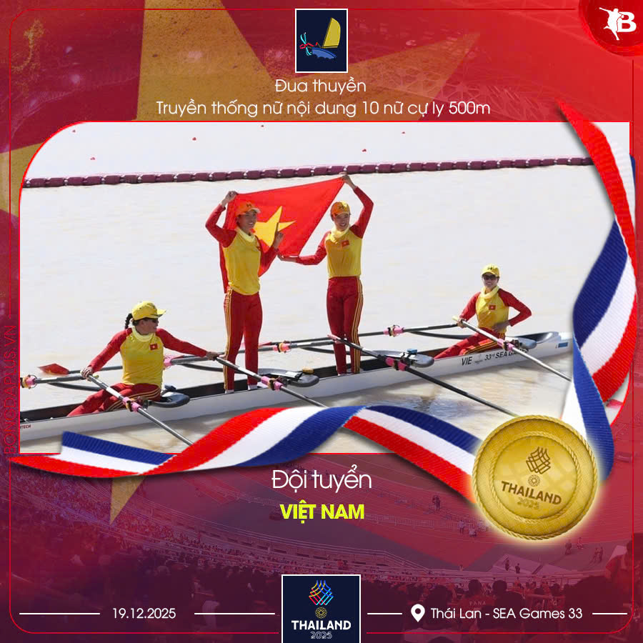 Đội thuyền truyền thống nữ Việt Nam với 10 VĐV đã thi đấu ấn tượng, cán đích đầu tiên ở nội dung thuyền 10 nữ cự ly 500m, vượt qua Indonesia, Myanmar và chủ nhà Thái Lan. Chiến thắng thuyết phục này mang về tấm HCV thứ 76 cho Đoàn thể thao Việt Nam tại SEA Games 33.