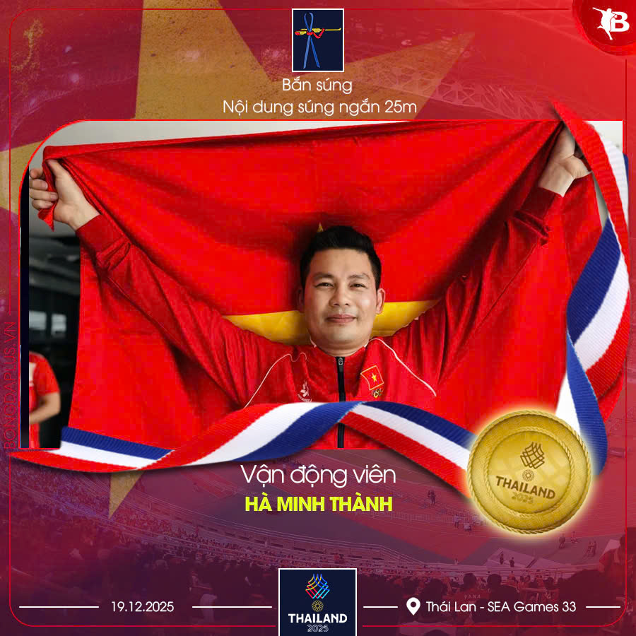 Hà Minh Thành đã có màn trình diễn thuyết phục để mang về tấm HCV ở nội dung súng ngắn 25m, ghi dấu ấn đậm nét cho đội tuyển bắn súng Việt Nam. Với 30 điểm, xạ thủ sinh năm 1985 không chỉ vượt qua các đối thủ cạnh tranh trực tiếp mà còn xô đổ kỷ lục SEA Games, khẳng định đẳng cấp và bản lĩnh ở đấu trường khu vực.