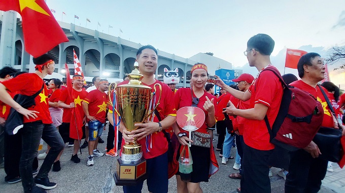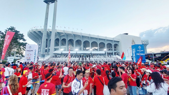 Hàng ngàn CĐV Việt Nam đã vào sân tạo thành không khí rất sôi động trên khán đài Rajamangala.
