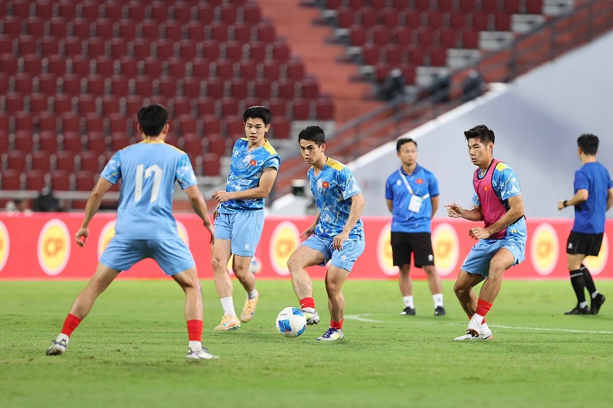 Vào lúc này, U22 Việt Nam đang khởi động để chuẩn bị cho trận đấu.