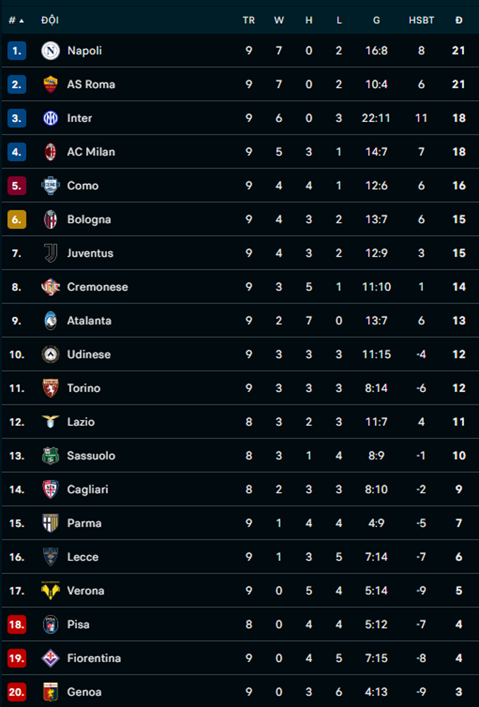 Đến phút 90+2, Mergim Vojvoda ấn định chiến thắng 3-1 cho Como. Kết quả này đưa HLV Cesc Fabregas và các học trò leo lên vị trí thứ 5 trên BXH Serie A. Từ đầu mùa, họ mới chỉ thua đúng 1 trận ở Serie A, thành tích tốt nhất giải (cùng với AC Milan). Giờ đây, Como chỉ kém đội dẫn đầu Napoli 5 điểm, kém top 4 có 2 điểm.
