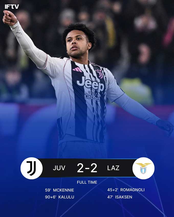Lazio rốt cuộc phải trả giá cho pha bỏ lỡ đó. Phút 90+6 Boga tạt bóng vào và Kalulu đã tung cú đánh đầu trong khu 5m50 để quân bình 2-2 cho Juventus, giữ 1 điểm ở lại Turin.