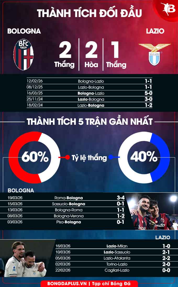Phân tích dữ liệu chuyên sâu Bologna vs Lazio