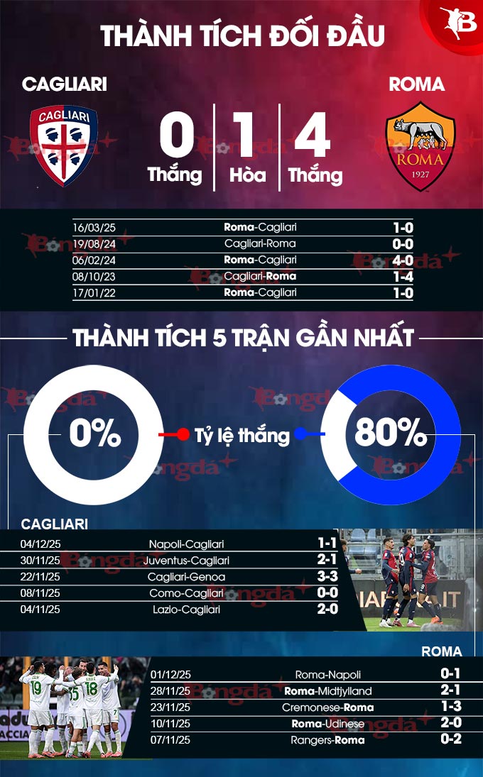 Phân tích phong độ Cagliari vs Roma