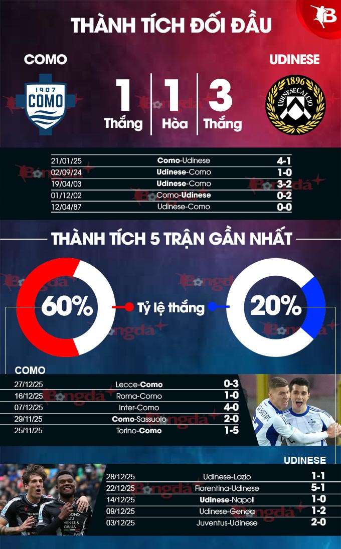 Bongdaplus dự đoán tỉ số Como vs Udinese