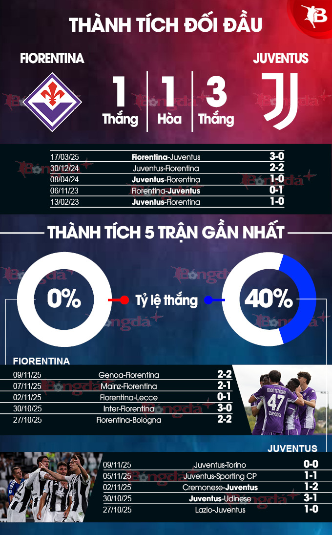 Fiorentina chỉ thua đúng 1/6 lần gần nhất tiếp đón Juve trên sân Artemio Franchi. Với sự chuệch choạc của Bianconeri lúc này, đội bóng áo tím đủ khả năng giành ít nhất 1 điểm.