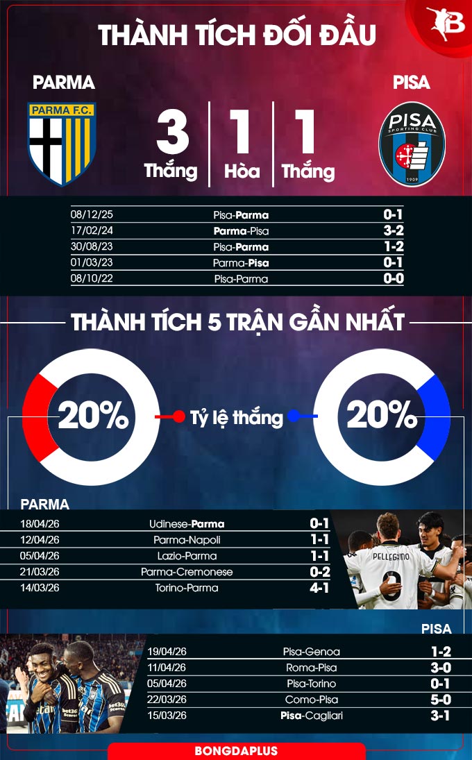 Phân tích phong độ Parma vs Pisa
