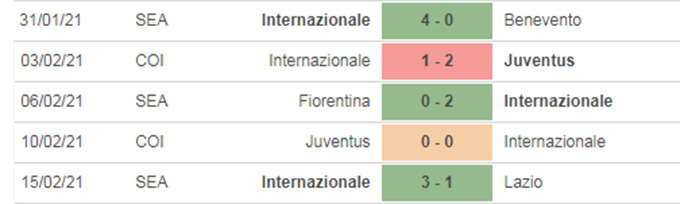 + 5 trận gần nhất của Inter