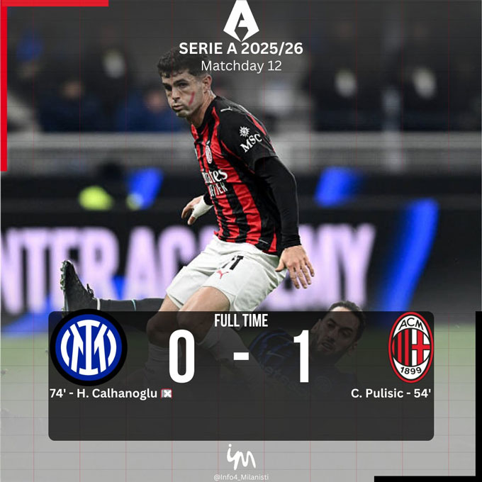 Kết quả cuối cùng của trận đấu này là 1-0 nghiêng về phía AC Milan. Rossoneri leo lên vị trí thứ 2 trên BXH và kéo dài mạch bất bại derby Milano lên 5 trận. Trong khi đó, Inter đã tụt xuống vị trí thứ 4.