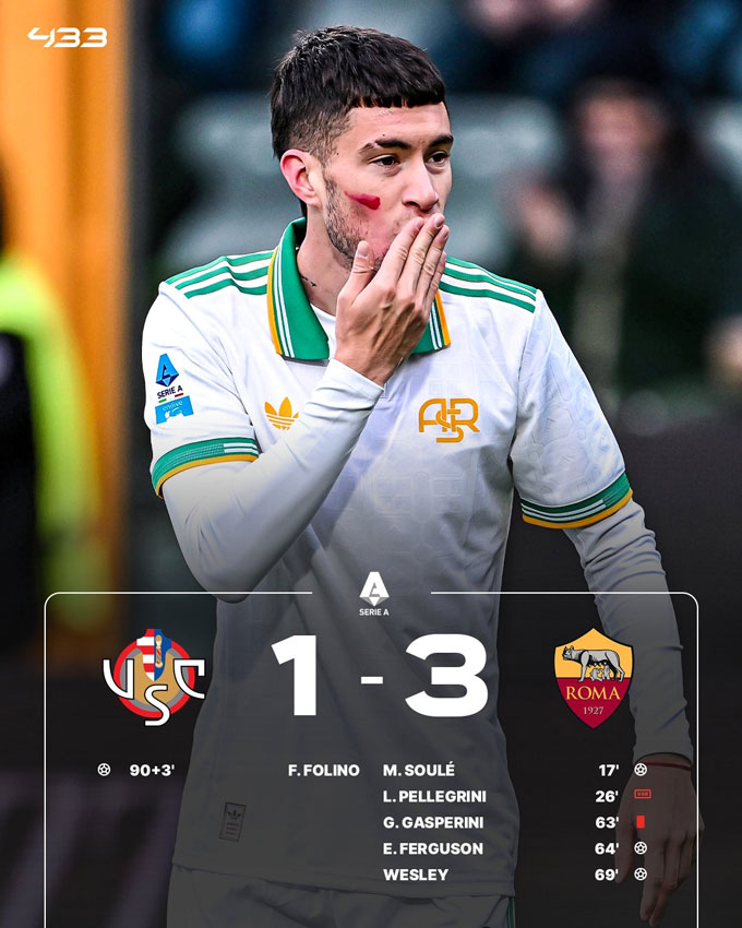Ở trận đấu diễn ra trước đó, AS Roma đã có chiến thắng 3-1 trên sân của Cremonese để cướp lấy ngôi đầu bảng của Napoli với 2 điểm nhiều hơn.