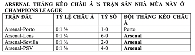 Trong khi đó, Arsenal đang chơi thăng hoa giai đoạn gần đây. Tính riêng tại Premier League, họ đã bất bại 11 trận gần nhất, giành 10 chiến thắng. Đáng chú ý, Pháo thủ cũng chơi tốt trên sân nhà mùa này ở Champions League. Bằng chứng là 4 trận đá tại Emirates ở đấu trường cấp CLB số 1 châu Âu thì Arsenal toàn thắng 4 trận và có 3 lần thắng kèo châu Á.