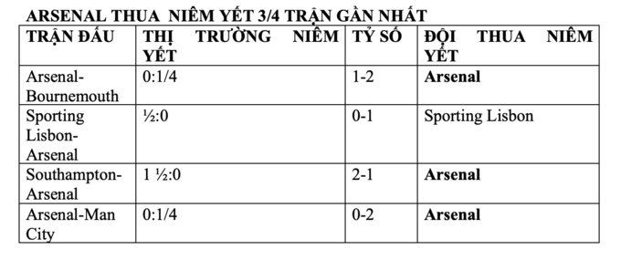 + Arsenal thua niêm yết ở 5/8 trận gần nhất.