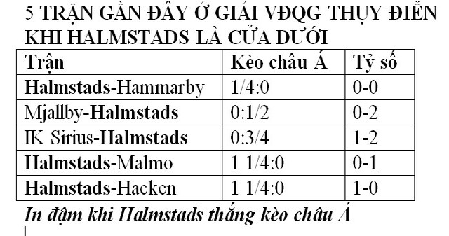 Halmstads đang có thành tích tốt khi thắng kèo châu Á 6/7 trận gần đây ở giải VĐQG Thụy Điển. Họ thậm chí thắng kèo 100% trong 5 trận vừa qua ở giải VĐQG khi là đội cửa dưới.