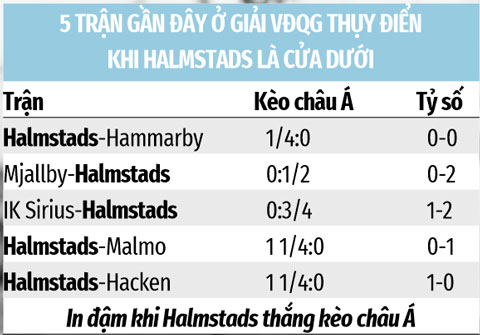 Halmstads đang có thành tích tốt khi thắng kèo châu Á 6/7 trận gần đây ở giải VĐQG Thụy Điển. Họ thậm chí thắng kèo 100% trong 5 trận vừa qua ở giải VĐQG khi là đội cửa dưới.