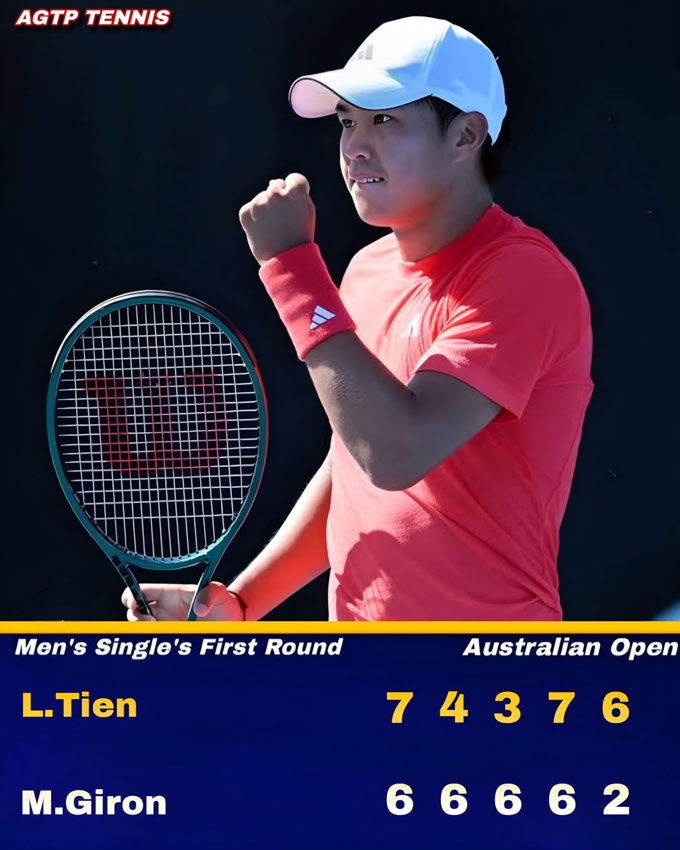 Learner Tien đã xuất sắc lọt vào vòng hai Australian Open 2026 sau chiến thắng kịch tính 3-2 (7-6; 4-6; 3-6; 7-6; 6-2) trước Marcos Giron.