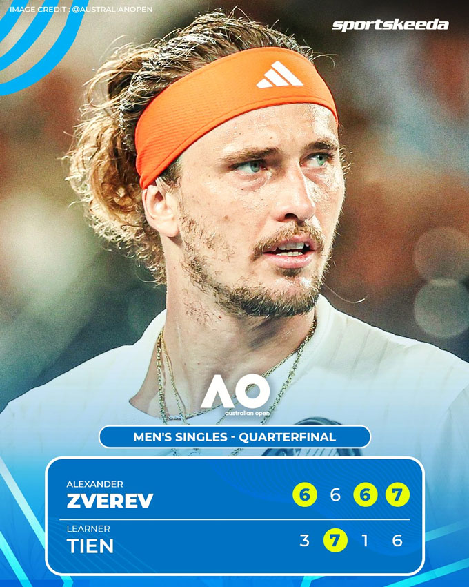 Zverev hiện đang là tay vợt số 3 thế giới và đã thể hiện sự vượt trội với 24 cú ace và chỉ 1 lần lỗi kép, trong khi đó Tien làm chủ các tình huống bóng bền từ cuối sân, khiến trận đấu diễn ra hấp dẫn hơn dự đoán.