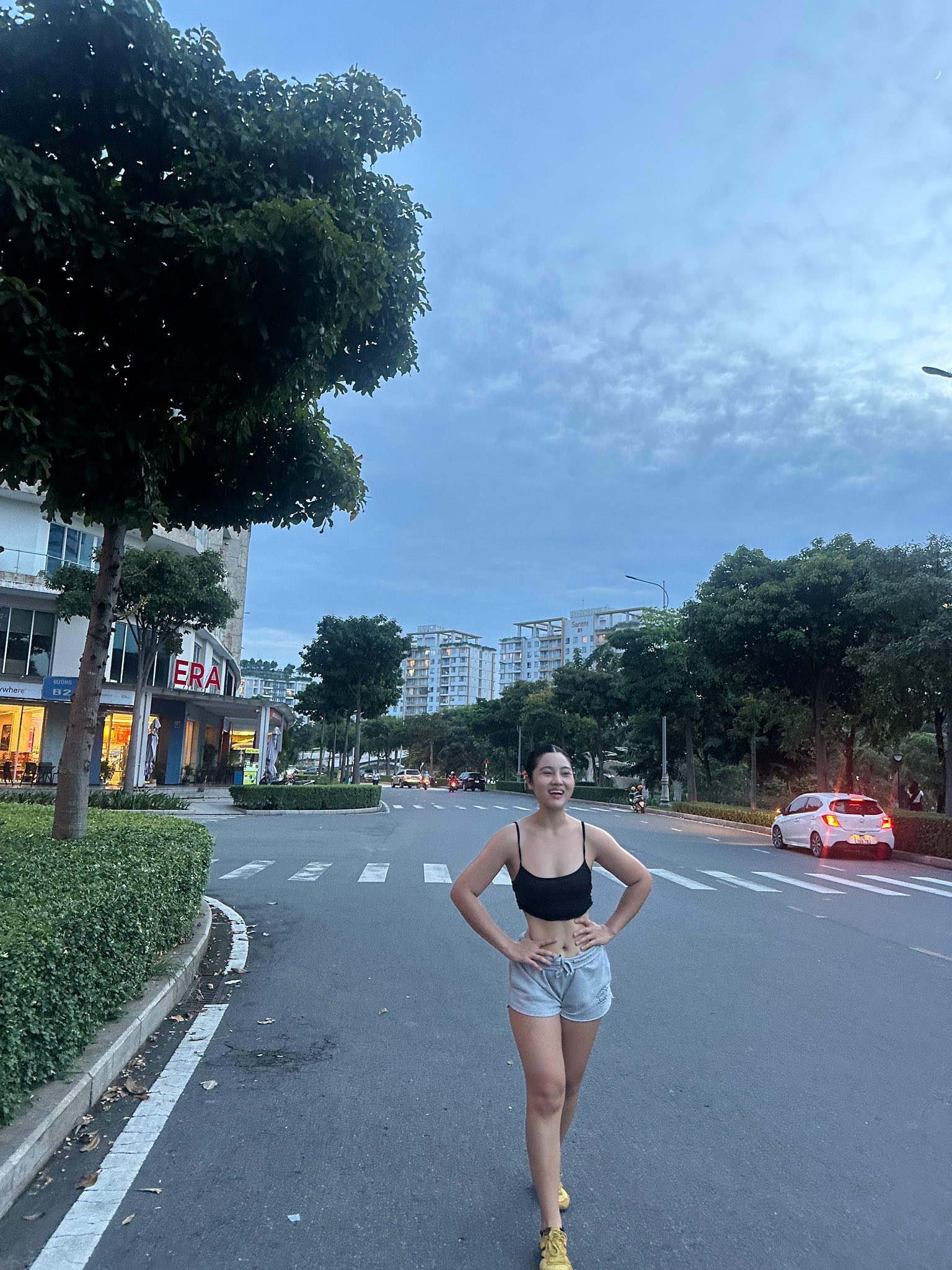 Hóa ra trước khi thưởng trà vào buổi tối, Trần Kim Hà cũng chơi khá nhiều môn thể thao từ chạy bộ, pickleball cũng như đến phòng tập gym để rèn luyện sức khỏe. Cô gái này cũng khéo khoe body khỏe mạnh, ba vòng chuẩn chỉnh và đặc biệt là chiếc áo 2 dây màu đen khá quyến rũ. Lúc này, Trần Kim Hà đang là cái tên được các fan rất quan tâm.