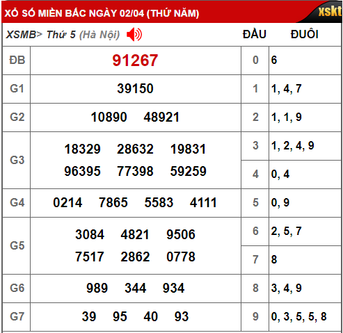 Kết quả xổ số miền Bắc